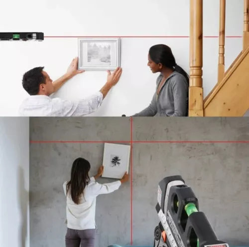 ✅️ Multifuncional: Combina un nivel de burbuja de triple posición, una regla, una cinta métrica y un láser de líneas cruzadas en una sola herramienta.